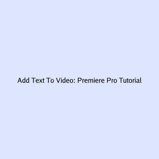 Add Text To Video: Premiere Pro Tutorial