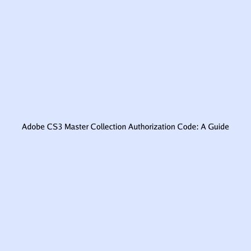 Adobe CS3 Master Collection Authorization Code: A Guide