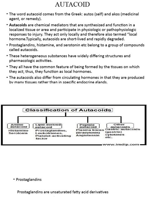 Understanding the role of autacoids in both health and disease is essential for developing effective treatments and therapies. By targeting specific autacoid systems, we can potentially alleviate symptoms, reduce inflammation, and improve overall health outcomes. However, it’s important to remember that autacoid systems are complex and interconnected, and targeting one autacoid may have unintended consequences on other systems. Therefore, careful consideration and monitoring are necessary when using medications that affect autacoid function.