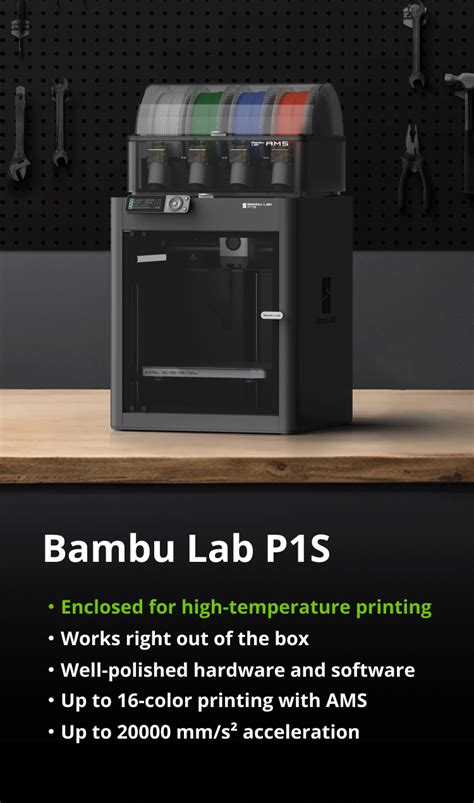 The Bambu Lab P1S is packed with features that make it a standout 3D printer. First and foremost , the AMS (Automatic Material System) is a game-changer. It allows you to load up to four different filaments, enabling multi-color and multi-material printing with ease. The printer automatically switches between filaments, making the process seamless and efficient. The P1S also boasts a high printing speed, capable of reaching up to 500 mm/s, significantly reducing print times without sacrificing quality. Its fully enclosed build chamber helps maintain a stable temperature, crucial for printing temperature-sensitive materials like ABS and ASA. The carbon fiber rods enhance the printer’s rigidity and reduce vibrations, resulting in smoother and more accurate prints. The P1S also features automatic bed leveling, ensuring a perfect first layer every time. It supports a wide range of filaments, including PLA, ABS, PETG, TPU, and more, making it a versatile tool for various projects. The printer’s user-friendly interface and intuitive software make it easy to set up and operate, even for beginners. With its combination of speed, precision, and versatility, the Bambu Lab P1S is a powerhouse that delivers exceptional results. The specifications are thoughtfully designed to provide a top-tier printing experience, catering to both novice and experienced users alike. This printer truly sets a new standard for performance and convenience in the 3D printing world.