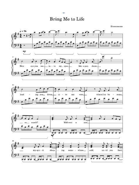 As “Bring Me To Life” progresses, you’ll encounter variations in the bridge and outro chord progressions for the piano . These sections often offer a shift in mood or intensity, providing a dynamic contrast before the final choruses or the song’s conclusion. The bridge typically introduces a slightly different harmonic flavor, often building suspense or offering a moment of reflection. While interpretations can vary, a common harmonic movement in the bridge might involve exploring chords like Cm (C minor) or F , moving away from the strict Gm-based progressions. For example, you might see something like: