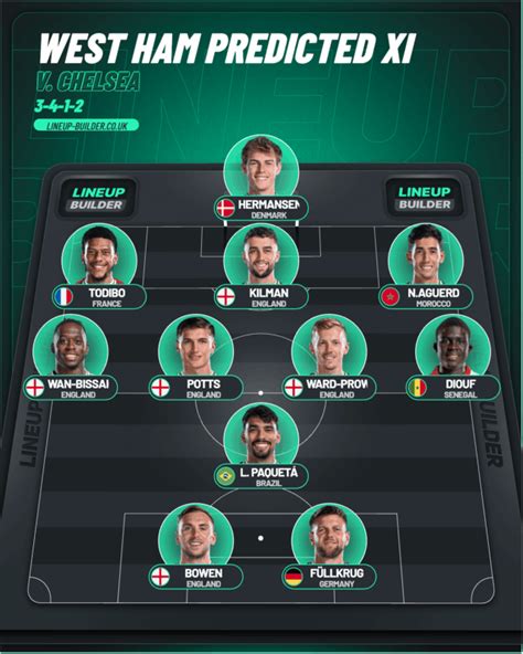 Alright, folks, it’s time to unveil our predicted starting 11 for Chelsea vs. West Ham . Based on team news, recent performances, and the manager’s tactical preferences, here’s what we think the lineup might look like. Remember, this is just a prediction, and the actual lineup could be slightly different. But we’ve done our best to analyze all the factors and come up with a realistic estimate. Let’s start with the goalkeeper. Considering his consistent performances, we expect him to be between the sticks. Next up, the defense. We anticipate a back four, with [Defender 1], [Defender 2], [Defender 3], and [Defender 4] forming the defensive line. The midfield is where things get interesting, guys. We think we’ll see [Midfielder 1], [Midfielder 2], and [Midfielder 3] controlling the center of the pitch. Their ability to win the ball, dictate the tempo, and create chances will be key to Chelsea’s success. Now, for the attack. Upfront, we’re predicting that [Winger 1] and [Winger 2] will start on the wings, providing width and creativity. And leading the line, we expect [Striker] to be up front, looking to find the back of the net. This formation should provide a good balance of defensive solidity and attacking flair. However, the manager might opt for a different approach depending on the game plan. The predicted lineup is based on current form, the players’ fitness levels, and the manager’s tactical preferences. The key players will be crucial for the team’s performance, and their individual brilliance could make all the difference. Remember, this is just our educated guess. The actual starting 11 could have some surprises, so we’ll be watching the official announcements with bated breath! But with this predicted lineup, you’ve got a good idea of who might be taking the field and what to expect from Chelsea’s approach to the match. Keep an eye on the official team news, and let’s get ready for an exciting game!