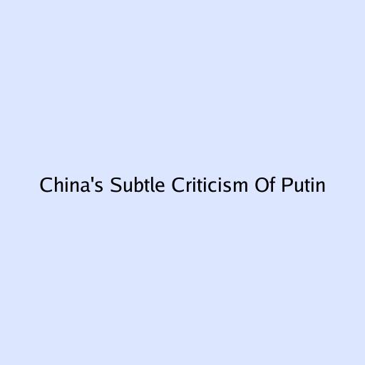 China's Subtle Criticism Of Putin