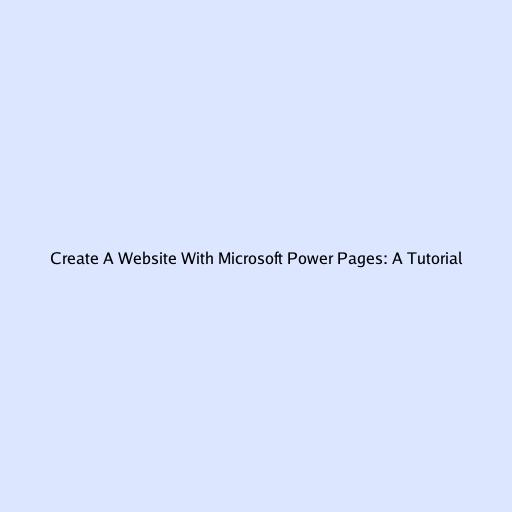 Create A Website With Microsoft Power Pages: A Tutorial