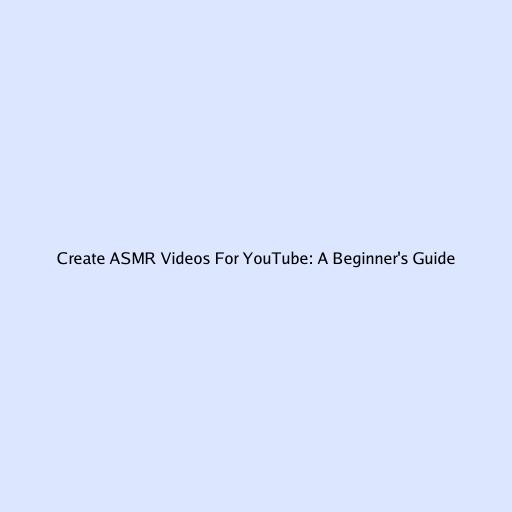 Create ASMR Videos For YouTube: A Beginner's Guide