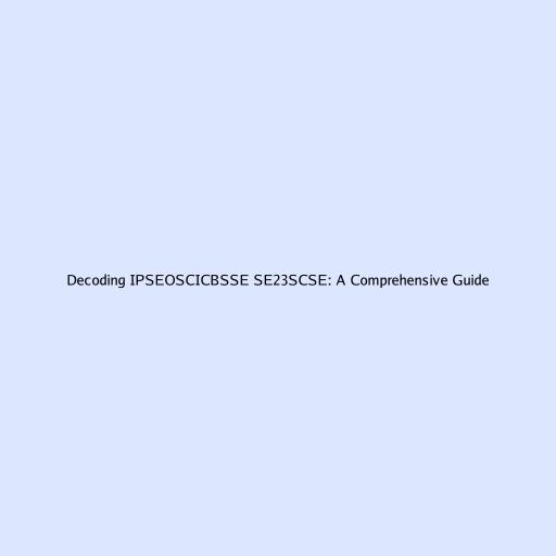 Decoding IPSEOSCICBSSE SE23SCSE: A Comprehensive Guide