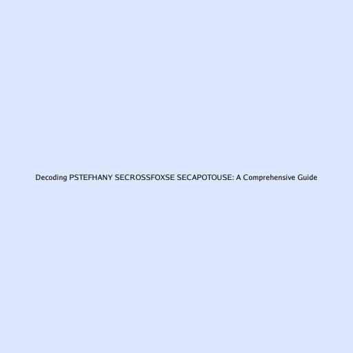 Decoding PSTEFHANY SECROSSFOXSE SECAPOTOUSE: A Comprehensive Guide