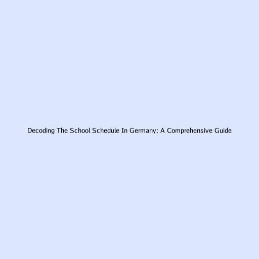 Decoding The School Schedule In Germany: A Comprehensive Guide