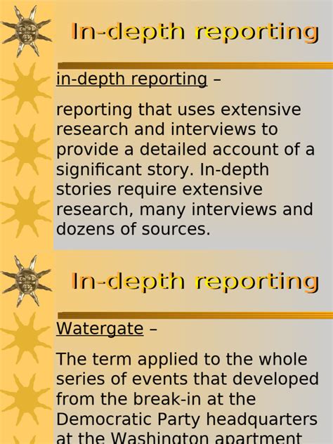 • Investigative Reporting: Often, depth news involves investigative reporting, where journalists uncover hidden information or expose wrongdoing. This can involve uncovering corruption, fraud, or other forms of misconduct.