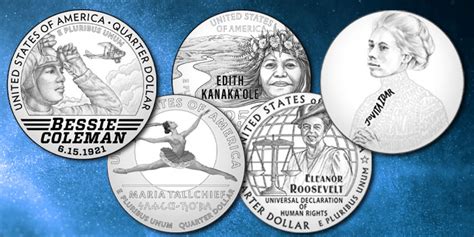 Let’s meet the incredible women who are gracing the 2023 quarters! Each of them has a unique and inspiring story. First up, we have Anna May Wong . She was a trailblazing Chinese-American actress and a prominent fashion icon of the 1920s and 1930s. Wong broke barriers in Hollywood, becoming the first Asian-American actress to gain international stardom. Her career spanned silent films, talkies, and television, and she was a symbol of resilience and talent in an era of intense discrimination. Next, we celebrate Bessie Coleman . A pioneer of aviation, Bessie Coleman was the first African-American woman and the first Native American to hold a pilot license. Despite facing immense racial and gender barriers, she pursued her dream of flight, becoming a celebrated barnstormer and stunt pilot. Her courage and determination paved the way for future generations of pilots. Then there’s Edith Kanakaʻole . A Native Hawaiian cultural icon, she was a master of hula and a respected kūpuna (elder) who dedicated her life to preserving and perpetuating Hawaiian language, culture, and traditions. Her work ensured that the rich heritage of Hawaii would be passed down to future generations. Following her is Eleanor Roosevelt . Beyond her role as First Lady, Eleanor Roosevelt was a diplomat, activist, and humanitarian. She was a driving force behind the Universal Declaration of Human Rights and a tireless advocate for social justice, civil rights, and women’s rights. Her legacy as a global humanitarian continues to inspire.