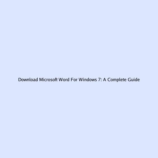 Download Microsoft Word For Windows 7: A Complete Guide