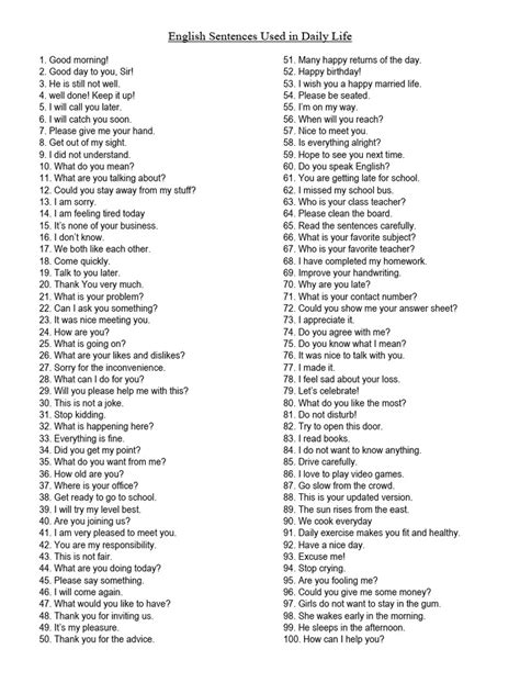 Essential English Sentences For Daily Use