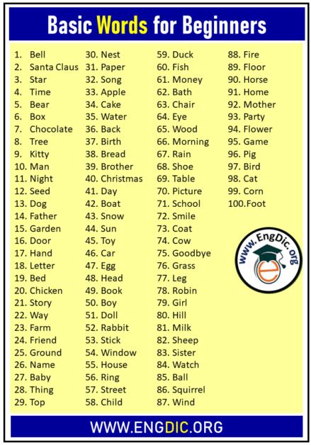 Basic nouns are the building blocks of any language. They represent objects, people, places, and ideas. Mastering these nouns will significantly enhance your ability to understand and communicate in English. These words form the foundation upon which you can build more complex sentences and express yourself more clearly.