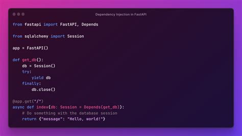 In conclusion, FastAPI’s dependency injection system, combined with secure session management techniques, provides a powerful and flexible way to build robust and scalable web applications. By using Depends to inject session objects into your endpoints, you can simplify your code, enhance security, and improve the user experience. Whether you’re building a simple API or a complex system, understanding and implementing these concepts is crucial for creating high-quality applications that meet the demands of modern web development. Always remember to prioritize security and follow best practices to protect your users and their data.