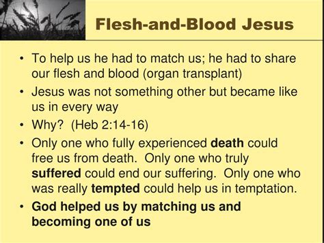 One of the most profound aspects of the Bible’s teaching on “flesh and blood” is how it relates to Jesus Christ. He is the ultimate bridge between the physical and the divine, the human and the heavenly. Jesus was fully God and fully human. He experienced life in flesh and blood , just like us. He was born of a woman, felt hunger, thirst, pain, and sorrow. He was tempted, just as we are, but He never sinned. This incarnation – God becoming human – is a cornerstone of Christian faith. In John 1:14, it says, “The Word became flesh and dwelt among us.” This wasn’t just a symbolic act; Jesus truly entered our physical reality. His suffering on the cross was real, His death was physical, and His resurrection was a victory over the limitations of death and the grave, demonstrating the power of the Spirit over the flesh. The Bible often emphasizes Jesus’ humanity to show His empathy and understanding of our struggles. Hebrews 4:15 says, “For we do not have a high priest who is unable to empathize with our weaknesses, but we have one who has been tempted in every way, just as we are—yet he did not sin.” Because Jesus experienced “flesh and blood” life, He can truly understand our human condition. He knows our weaknesses, our temptations, and our pain. This makes our faith not just an abstract belief system, but a deeply personal connection with a Savior who walked in our shoes. Furthermore, Jesus’ sacrifice is what allows us to overcome the power of “flesh and blood” in its negative, sinful sense. Through His death and resurrection, we are offered forgiveness for our sins and the promise of a new spiritual life. His blood, shed on the cross, is what atones for our sins and reconciles us to God. This is why communion, or the Lord’s Supper, is so significant – it’s a remembrance of His sacrifice, His body broken and His blood shed for us. It’s a tangible way to connect with the spiritual reality of His saving work. So, Jesus isn’t just a teacher or a prophet; He is the divine solution to the problems inherent in “flesh and blood” humanity. He bridges the gap, offering us His divine nature through the Holy Spirit, enabling us to live a life that honors God, even within our physical limitations. He shows us that while our flesh and blood nature is real and has its struggles, it doesn’t have to be the defining aspect of our existence. Through Him, we can experience transformation and a life that transcends the limitations of our earthly bodies and sinful tendencies, offering us hope for eternity.