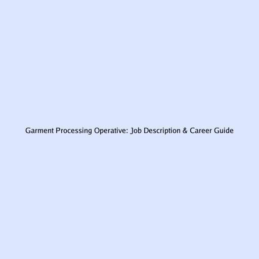 Garment Processing Operative: Job Description & Career Guide