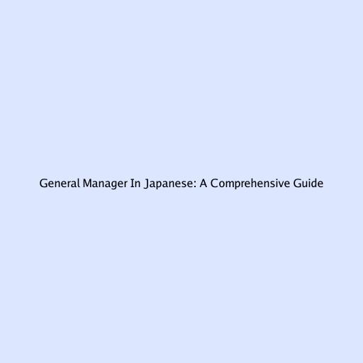 General Manager in Japanese: A Comprehensive Guide