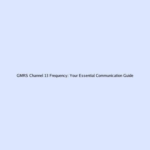 GMRS Channel 13 Frequency: Your Essential Communication Guide