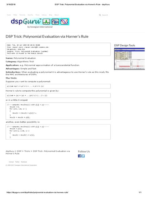 • Digital Signal Processing: Polynomials play a crucial role in digital signal processing (DSP), where they are used to model filters and systems. Horner’s Method is used to evaluate these polynomials, enabling efficient signal processing algorithms. This is particularly important in applications such as audio and video processing, where real-time performance is critical.