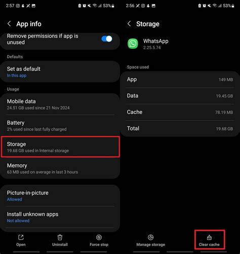 Clearing WhatsApp Cache on Android