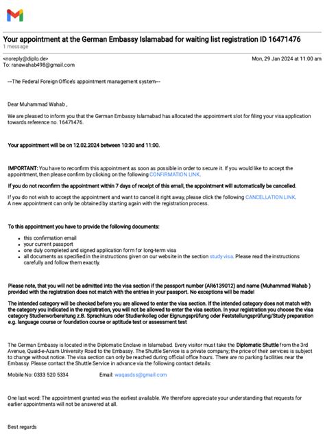 Often, after sending your email, you might receive an automated acknowledgment confirming that your message has been received. This automated reply might also provide a reference number for your inquiry, which you should definitely keep track of for any future follow-up. It could also reiterate guidelines, direct you to FAQs on their website, or state the expected response timeframe. Pay close attention to these automated messages; they are not just generic replies but often contain valuable information. During this waiting period, resist the urge to send multiple identical emails or to email different departments with the same query. This practice, often called “email bombing,” can actually slow down the process, as it clogs up inboxes and creates duplicate cases, making it harder for staff to track your original request efficiently. If you haven’t heard back within the stated timeframe, or if an unreasonably long period has passed without any communication, then a polite follow-up email is appropriate. In your follow-up, reference your original email, including the date it was sent and any case or reference number provided. Briefly reiterate your query, and ask for an update. Check your spam or junk folder regularly, as official replies sometimes, unfortunately, get filtered there. Also, understand that the type of response you receive might vary. It could be a direct answer to your question, a request for more information or documents, a redirection to a different department or consulate, or an invitation to schedule an appointment. Regardless of the form, the key is to remain patient, professional, and prepared for the next steps in your communication with the German Embassy .