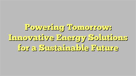 Innovative Energy Solutions: Powering The Future