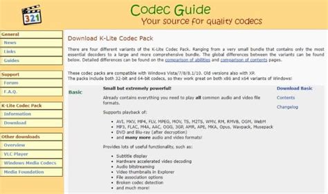 2. Choose the Right Version : On the website, you’ll find different versions of the K-Lite Codec Pack. Here’s a quick guide to help you choose: