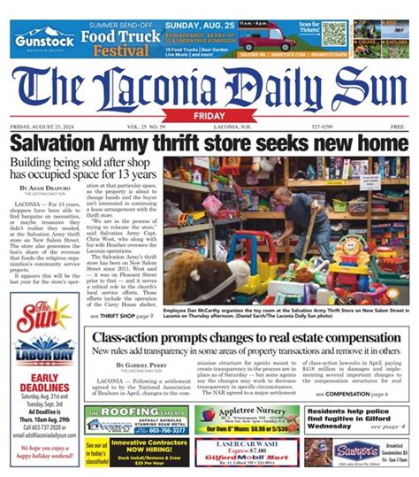 If you value local journalism and want to support the Laconia Daily Sun , there are several ways you can do so. The most direct way is to subscribe to the newspaper, either in print or online. Subscribing not only gives you access to all the latest news and information, but it also provides financial support to the newspaper, allowing them to continue their important work. Another way to support the Laconia Daily Sun is to advertise your business with them. Local businesses rely on the newspaper to reach potential customers, and advertising helps to ensure that the newspaper remains financially sustainable. You can also support the Laconia Daily Sun by attending their events, participating in their contests, and sharing their stories on social media. By spreading the word about the newspaper, you can help to increase its readership and visibility in the community. Every little bit helps, and your support is greatly appreciated.