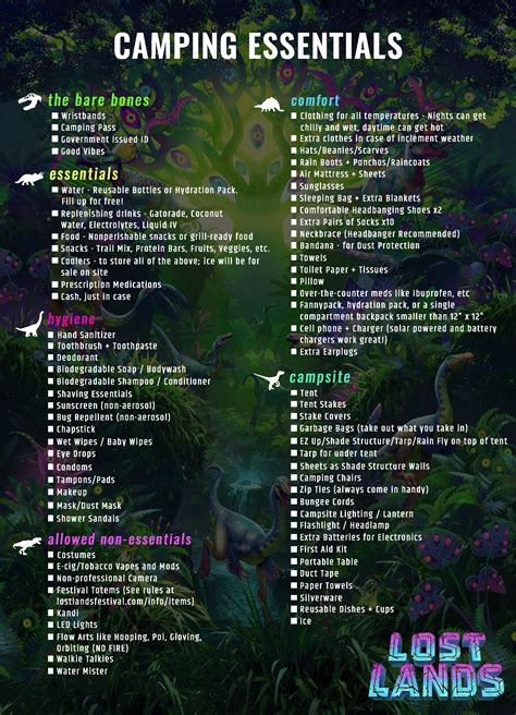 Now, let’s get to the fun part – festival fashion! Lost Lands is all about expressing yourself and embracing the unique vibes of the community. When it comes to outfits for Lost Lands , comfort is key, but so is making a statement. Pack clothes that are breathable and suitable for potentially hot and humid weather, but also bring layers for cooler evenings. Think comfortable shorts, flowy skirts, graphic tees, and tank tops . Don’t forget rain gear ! A waterproof jacket or poncho is absolutely essential. Seriously, don’t be that person shivering in the rain. Comfortable footwear is paramount. You’ll be doing a ton of walking and dancing, so leave the new, un-broken-in shoes at home. Boots, sturdy sneakers, or comfortable sandals are your best bet. Consider bringing an extra pair of shoes in case one gets wet or muddy. Bandanas and hats are great for sun protection and adding a touch of flair to your look. Get creative with accessories ! Think glitter, face gems, temporary tattoos, fun jewelry, and anything that makes you feel like your most vibrant self. Many people also love to wear kandi to trade, so if you’re into that, pack plenty! For those who want to stand out, consider unique costumes or themed outfits that align with the dinosaur and bass music theme of Lost Lands. Remember to pack enough socks – clean socks can make a huge difference in comfort. And for the ladies, don’t forget comfortable bralettes or supportive bras . It’s all about feeling good in your own skin while you’re out there having the time of your life.