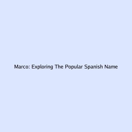 Marco: Exploring The Popular Spanish Name