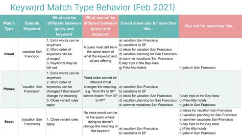 Understanding how phrase match stacks up against other match types is crucial for crafting a well-rounded Google Ads strategy. Let’s take a closer look: