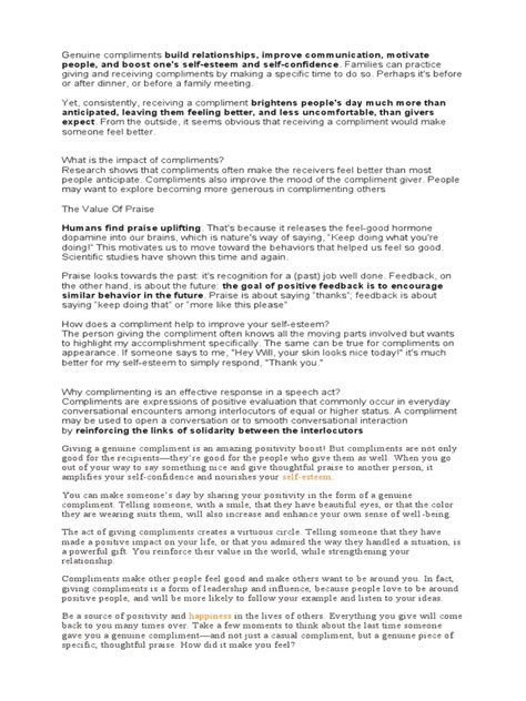 Keywords: genuine compliments, sincere praise, avoid flattery, authenticity in communication, positive feedback, building trust, relationship building, effective communication, communication skills, interpersonal skills