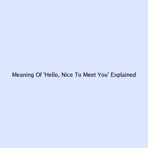 Meaning Of 'Hello, Nice To Meet You' Explained