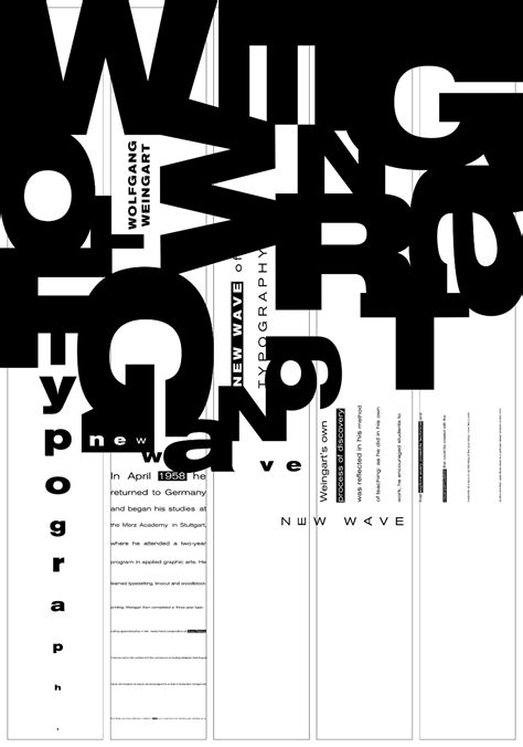 Font pairing is key. Designers often mix and match different typefaces to create contrast and visual interest. This could involve pairing a bold, sans-serif font with a delicate script, or a geometric font with a more organic one. The key is to create a sense of harmony and balance, even when the fonts are very different. You should be prepared to try a lot of different combinations before you find the right ones. There are also font distortion and manipulation techniques. Designers often stretch, distort, or otherwise manipulate fonts to create unique visual effects. This could involve skewing the letters, overlapping them, or adding special effects like shadows or outlines. The goal is to make the text stand out and to create a sense of visual energy. Finally, experimentation is encouraged. This is the heart of New Wave Typography! Don’t be afraid to try new things, to break the rules, and to push the boundaries of what is possible. The most innovative designs often come from experimentation and a willingness to take risks.