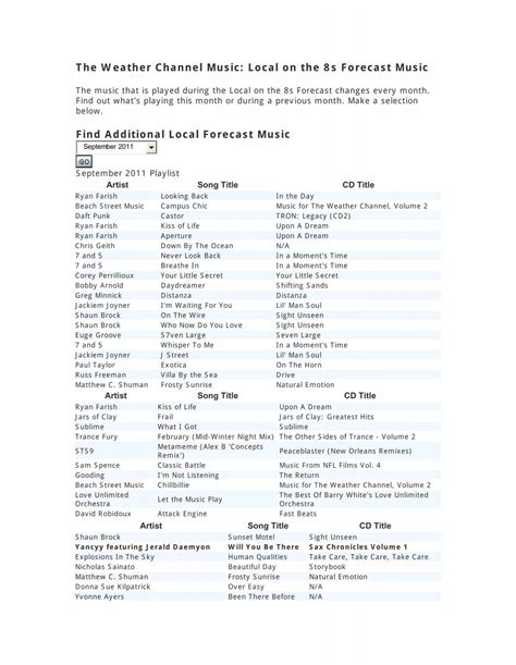 The unique sound of the Weather Channel wasn’t accidental; it was the result of deliberate choices in musical composition and selection. The channel’s music directors sought out pieces that would create a calming and informative atmosphere, perfectly complementing the weather forecasts being presented. They avoided jarring or distracting sounds, opting instead for melodies that were both soothing and engaging. This approach helped to keep viewers tuned in and receptive to the information being shared. One of the defining characteristics of the Weather Channel’s music was its heavy reliance on instrumental tracks. Vocals were generally avoided, as they could be distracting and detract from the focus on the weather information. Instead, the channel favored instrumental pieces that featured a variety of instruments, including synthesizers, pianos, guitars, and saxophones. These instruments were often blended together to create a rich and layered sound that was both pleasing to the ear and conducive to relaxation. Another key element of the Weather Channel’s unique sound was its use of smooth jazz influences. Many of the channel’s most iconic tracks featured elements of smooth jazz, such as syncopated rhythms, improvisational melodies, and a generally laid-back vibe. This genre was a natural fit for the Weather Channel’s brand identity, as it was both sophisticated and accessible, appealing to a wide range of viewers. The Weather Channel’s music directors also made a point of selecting tracks that were relatively unknown or obscure. This helped to create a sense of exclusivity and uniqueness, as viewers were unlikely to hear the same music on other television channels or radio stations. This approach also allowed the Weather Channel to establish its own distinct musical identity, setting it apart from its competitors. Over the years, the Weather Channel has worked with a variety of composers and musicians to create its signature sound. Some of these individuals have remained anonymous, while others have gained recognition for their contributions to the channel’s musical legacy. Regardless of their level of fame, these artists played a crucial role in shaping the Weather Channel’s identity and creating a lasting impression on viewers. The unique sound of the Weather Channel has had a profound impact on popular culture. The channel’s music has been sampled, remixed, and covered by countless artists, and it continues to be celebrated by fans around the world. This enduring popularity is a testament to the power of music to evoke emotions, create memories, and shape our collective consciousness. So, the next time you hear a soothing melody that reminds you of the Weather Channel , take a moment to appreciate the artistry and thoughtfulness that went into creating its unique sound . It’s a sound that has become synonymous with comfort, reliability, and the simple pleasure of knowing what the weather holds.