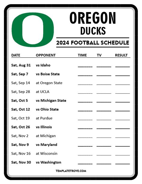So there you have it, folks! Your ultimate guide to the Oregon Ducks football schedule 2024 , complete with tips on how to find a printable version and make the most of the season. With this information, you’ll be well-prepared to cheer on the Ducks and support them every step of the way. Get ready for an action-packed season filled with thrilling moments and unforgettable memories. Go Ducks! Let’s make this season one for the books! Grab that printable schedule, mark your calendars, and let the countdown to kickoff begin. Whether you’re tailgating at Autzen Stadium or hosting a watch party at home, the 2024 season promises to be an unforgettable ride. So, gear up, get loud, and let’s cheer our Ducks to victory! Remember, it’s not just about the games; it’s about the community, the traditions, and the unwavering support for our team. Let’s show the world what it means to be a Oregon Ducks fan! Quack, quack!
