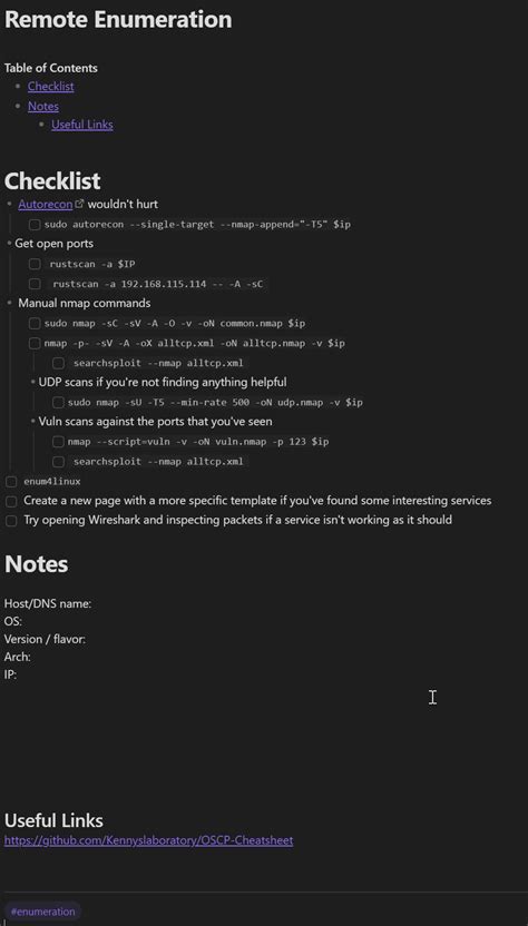 • D – Document . This is where many people fall short! Documentation is perhaps the most important phase. Even if you successfully penetrate a system, if you can’t document your findings and explain your methodology, you haven’t truly succeeded. Effective documentation includes detailed notes on each step of the process, including the tools used, the commands executed, and the results obtained. For each machine or environment, document every single command, step-by-step. Detailed documentation demonstrates your ability to reproduce your steps, which is critical in a professional penetration testing environment. This phase not only helps you during the exam, but it also prepares you for real-world scenarios, where documentation is essential for reporting findings to clients and stakeholders.
