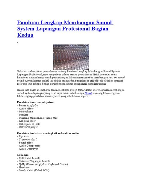 Panduan Lengkap Model Sound System Lama