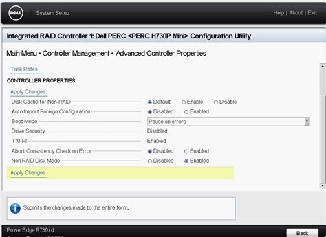 2. Access the RAID Controller Configuration: Navigate to the storage or RAID controller section of the BIOS. You should see the PERC H730 listed. Select the controller to access its configuration menu.