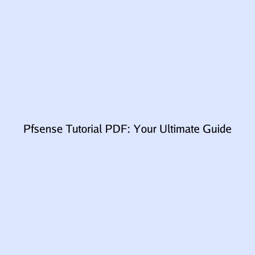 Pfsense Tutorial PDF: Your Ultimate Guide