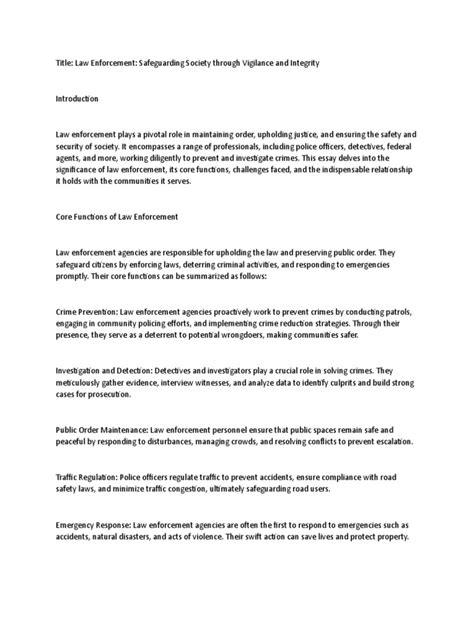 Law enforcement and the justice system are essential for maintaining order within a society . They are responsible for enforcing laws, protecting citizens, and ensuring that justice is served. Police forces play a crucial role in preventing crime, responding to incidents, and maintaining public safety. They work to protect individuals and communities from criminal activities. The courts and judicial system are responsible for hearing cases, interpreting laws, and administering justice. They ensure that all individuals are treated fairly under the law. Correctional facilities play a vital role in detaining offenders, rehabilitating them, and preparing them for reintegration into society. Law enforcement is also evolving to meet new challenges, such as cybercrime and terrorism. They are adapting their strategies and tactics to prevent and respond to these threats effectively. The justice system works to uphold the rule of law and protect the rights of individuals. This includes ensuring fair trials, protecting due process, and upholding the principles of justice and equity. Crime prevention programs are crucial for reducing crime rates and creating safer communities. These programs often involve community policing, education, and social support. The justice system is also responsible for rehabilitating offenders, which helps reduce recidivism rates and promotes public safety. The justice system also plays a crucial role in addressing social inequalities and ensuring that all individuals are treated fairly under the law. Law enforcement and the justice system are critical components of a safe and stable society, working together to uphold the rule of law and protect citizens.