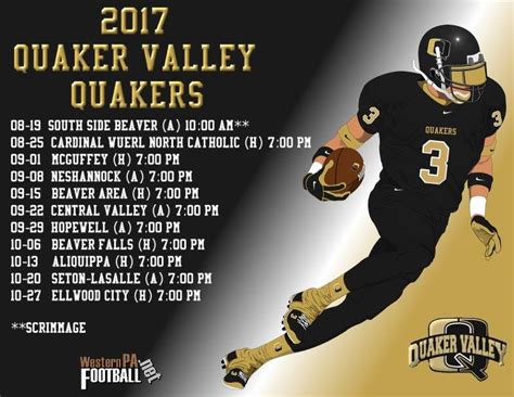 Let’s get into the specifics! The Quaker Valley football season typically starts in late August and runs through the fall, often concluding with playoffs in November. The exact schedule will vary from year to year, depending on the league and any special events. Keep an eye on the official schedule to get the exact dates. Looking back at the team’s performance, assess the previous season’s results. Did the team make it to the playoffs? What were their strengths and weaknesses? Use this information to inform your expectations for the upcoming season. Consider the key players. Who is returning to the team, and who has graduated? Their impact on the team’s performance can be significant. Any new additions to the team, such as promising freshmen or transfers, can be game-changers. Evaluate the coaching staff. Have there been any changes? A strong coaching staff is crucial for a team’s success. Their strategies, leadership, and ability to guide the team are essential. Consider the team’s competition. Who are the other teams in their league? What are their strengths? Analyzing the competition will give you a good sense of the challenges ahead. Set reasonable expectations. You may anticipate a winning record, playoff appearances, or other achievements. Remember that sports are unpredictable, and anything can happen. Be prepared for both successes and setbacks. Maintain a positive attitude. Cheer for the team, and support their efforts. The team’s performance can fluctuate, but your support can help them stay focused and motivated. Follow the team’s progress. Stay updated with the scores, news, and highlights. Celebrate the team’s achievements and support them through any difficulties. By taking a close look at all of these factors, you can get a better understanding of the Quaker Valley football team . With this knowledge, you can set realistic expectations and cheer the team on throughout the season. Let’s prepare to enjoy the thrilling ride that football brings. Go Quakers!