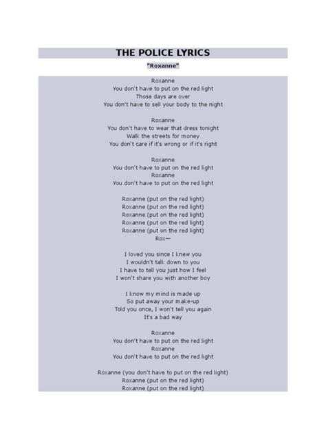 Now, let’s really get into the nitty-gritty of the Roxanne lyrics espaol and English versions. The beauty of this song lies in its directness and the raw emotion it conveys. In English, Sting pleads, “ Roxanne, you don’t have to put on the red light. Roxanne, you don’t have to sell your body to the night. ” This is the core of the message – an appeal to Roxanne to abandon her profession. He sees her pain, her suffering, and he wants to offer her an escape. He sings, “ I want to put your tears back in your eyes and make-a you laugh. If I heard that you were crying, I’d understand. ” This shows his deep understanding and compassion. He’s not judging her; he’s acknowledging her pain and offering comfort, a stark contrast to the transactional nature of her current life. The repetition of “ Roxanne, Roxanne ” acts like a chant, a desperate call, emphasizing the urgency and his singular focus on her. Now, when you look at the Roxanne letra espaol translations, the essence remains remarkably intact, even with the linguistic shift. Phrases often translate to similar sentiments of pleading and a desire for change. For instance, the plea to stop working is conveyed with the same intensity, and the offer of a better life is still central. The Spanish versions capture that feeling of desperation and yearning for a different future, ensuring the song’s powerful message transcends language barriers. It’s a testament to the strength of Sting’s songwriting that the core emotional narrative remains so potent, whether you’re listening in its original English or exploring its translations. The raw emotion and the story of offering a way out of a difficult life are universally understood, making the Roxanne lyrics meaning resonate deeply across cultures.