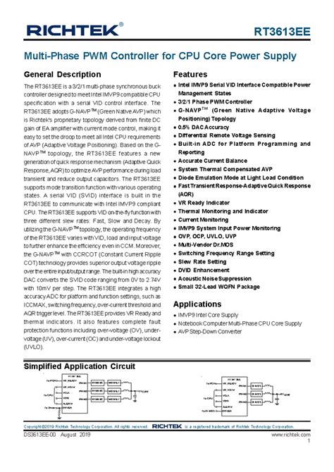 Let’s get down to the nitty-gritty and explore the key features and specifications that make the RT3613EE stand out. Understanding these details will give you a better appreciation of its capabilities and why it’s chosen for specific applications. One of the primary features of the RT3613EE is its high efficiency . It’s designed to minimize power loss during conversion, which is critical for extending battery life in portable devices. High efficiency means that more of the input power is converted into useful output power, and less is wasted as heat. This not only saves energy but also helps to keep the device cooler, improving its overall performance and longevity. Another important aspect is its wide input voltage range . The RT3613EE can operate with a broad range of input voltages, making it suitable for various power sources, including batteries, adapters, and USB power. This flexibility is particularly useful in devices that may be powered by different sources or that need to handle fluctuations in input voltage.