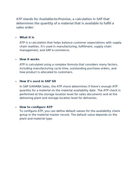 Hey everyone, let’s dive into something super useful in the world of SAP: ATP quantity . Ever wondered what that acronym actually means when you’re dealing with inventory and sales orders? Well, you’ve come to the right place! ATP stands for Available-to-Promise , and it’s a crucial concept for managing your stock effectively. Essentially, ATP quantity tells you how much of a product you can confidently promise to customers right now, considering what you have on hand, what’s already committed, and what’s expected to arrive soon. Think of it as your real-time inventory superpower, helping you avoid overselling and keep your customers happy. Understanding this metric is key for smooth operations, from sales reps checking stock to warehouse managers planning shipments. We’ll break down exactly what goes into calculating it, why it’s so important, and how you can leverage it to make your business run like a well-oiled machine. So, buckle up, because we’re about to demystify SAP ATP quantity for you!