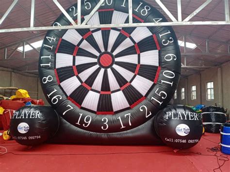 Okay, so what exactly is a football darts inflatable ? Simply put, it’s a giant, inflatable dartboard that you kick footballs at instead of throwing darts. Picture a massive, vertically oriented dartboard, complete with scoring zones, usually made of durable, weather-resistant materials. The goal? To kick the footballs onto the board and accumulate points based on where they land. The game typically comes with a set of footballs designed for optimal performance, often with Velcro-like surfaces to stick to the inflatable board. It’s a brilliant concept, merging the strategy and accuracy of darts with the athleticism of football. So, the hype is real, guys. Because it is a simple game that everyone can understand and have fun doing it! The appeal is obvious, right? It’s easy to set up, suitable for all ages and skill levels, and provides a fun, engaging way to get active and competitive. They’re a massive hit at parties, corporate events, family gatherings, and even schools. Its universal appeal makes it a standout choice for anyone looking to add a unique and exciting activity to their event. With its instant fun factor and easy gameplay, it is no wonder that football darts inflatable continues to grow in popularity. The concept itself is inherently fun, combining two beloved pastimes into one thrilling experience. This makes the game incredibly accessible, as participants don’t need any prior expertise to participate. The simplicity of the game also adds to its appeal, with easy-to-understand rules that make it perfect for players of all ages and abilities. The engaging nature of the game encourages friendly competition, creating an atmosphere of excitement and camaraderie. Its adaptability means it can be played almost anywhere. From backyards to event spaces, these inflatables can transform any space into a vibrant and energetic play area. This versatility has fueled the popularity of football darts inflatable , establishing it as a go-to choice for parties, corporate events, and other social gatherings.