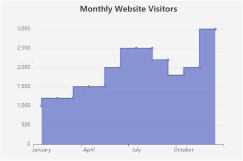 Website traffic often experiences sudden spikes due to marketing campaigns, product launches, or other events. A step chart can clearly show these sudden increases in traffic and the periods when traffic remains stable. The horizontal lines would represent the periods of constant traffic, while the vertical lines would indicate the spikes. This can be valuable for website owners and marketers who want to understand the impact of their efforts and identify trends in website traffic.