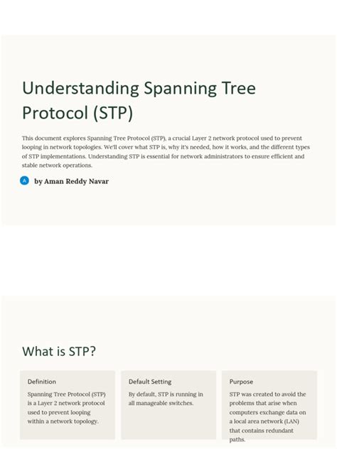 • Spanning Tree Protocol (Networking): In the realm of computer networks, STP refers to a protocol that prevents loops in a network topology, ensuring stable and efficient data transmission.