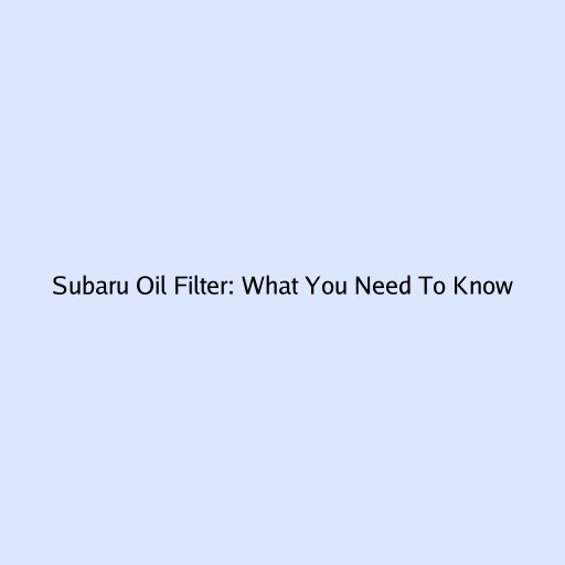 Subaru Oil Filter: What You Need to Know