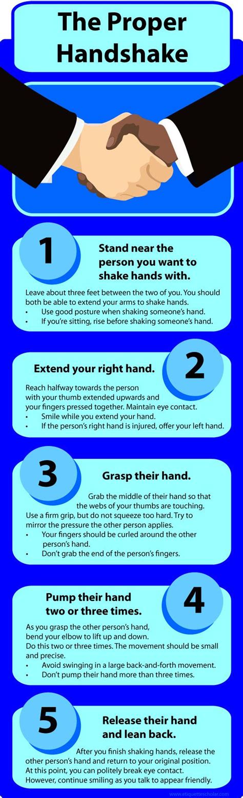 We’re at the final step, guys, and it’s a crucial one: the release. How you end the handshake is just as important as how you start it. You want to release the handshake smoothly , without any awkward lingering or sudden tugging. As you complete your couple of gentle shakes, maintain eye contact for a moment longer, perhaps with a smile, and then smoothly withdraw your hand. It’s like a graceful exit from a dance. Don’t hold on too long, and don’t let go abruptly. A smooth release indicates continued confidence and politeness. It’s the final punctuation mark on your initial greeting. Think about it: if you hold on too long, it becomes uncomfortable. If you let go too soon, it might feel dismissive. The smooth release ensures that the positive impression you’ve made is maintained until the very end of the handshake. This is particularly important in more formal settings or when meeting someone for the first time. It shows you’re aware of social cues and are respectful of personal space. After the release, a simple nod or a brief continuation of the conversation, like “It was good meeting you,” solidifies the positive interaction. This final moment is your chance to ensure the entire handshake experience was pleasant and professional. The smooth and confident release leaves the other person feeling comfortable and respected. It’s the final touch that ensures your handshake is remembered for all the right reasons. Mastering these five tips – the firm grip, consistent eye contact, balanced shake, clear greeting, and smooth release – will dramatically improve your first impressions. So, go out there and practice! A great handshake is a powerful tool in your communication arsenal. It’s a simple gesture, but its impact is undeniable. Remember these points, and you’ll be shaking hands like a pro in no time. You got this!